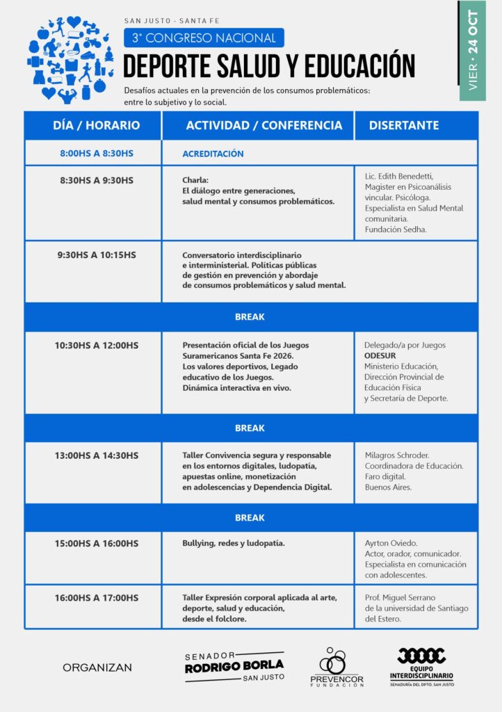 (24/10/2025), Horario 7 a 20 hs., Tipo de evento: 3er. Congreso Nacional “Deporte, Salud y Educación”.